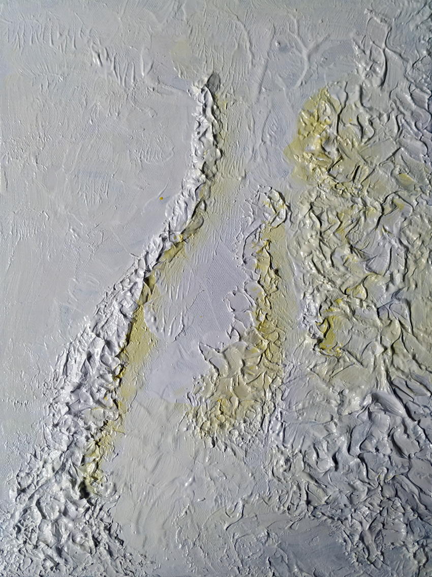 The vibrant, rich impasto texture is the heart of the piece. The soft tones of gray, white, and pale glimmers are not just seen; they are felt, creating a mental landscape of tranquil waves or dense clouds. This is a work that communicates without words, connecting directly with our deepest emotions. This immersive experience evokes a profound calmness and reveals the subtle beauty of memory. Its technical execution demonstrates a clear artistic vision in contemporary practice.