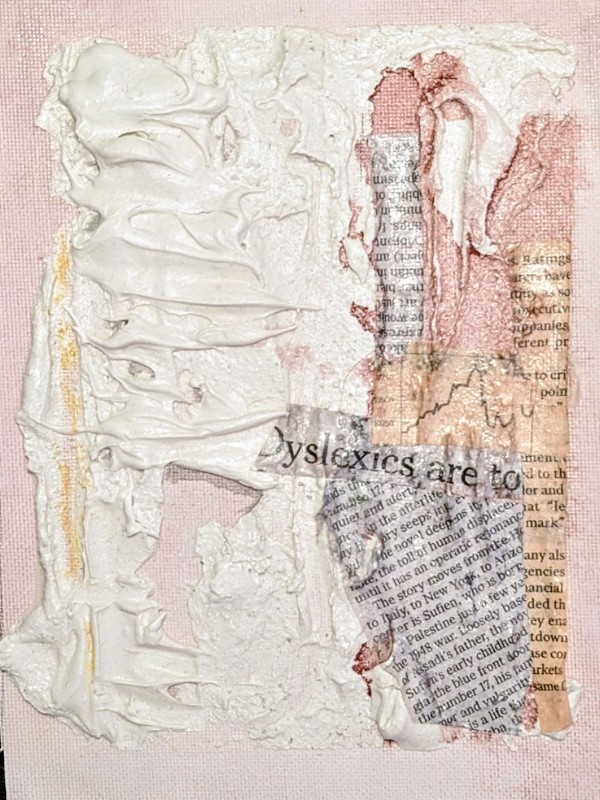 Acrylic, paper and plaster impasto on canvas.