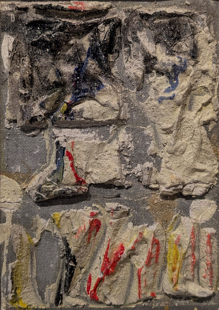 Technique & Materiality: In Ash, the technique focuses on an organic manipulation of acrylic and plaster on canvas, creating a high-relief topography that invites visual exploration. The heavy impasto mimics the brittle nature of calcined remains, where the plaster provides a unique mineral structure. Through the strategic use of matte and gloss varnishes, the work generates a constant luminous dialogue, alternating between the opacity of dust and the reflection of wet matter in a 23 x 32 cm format.