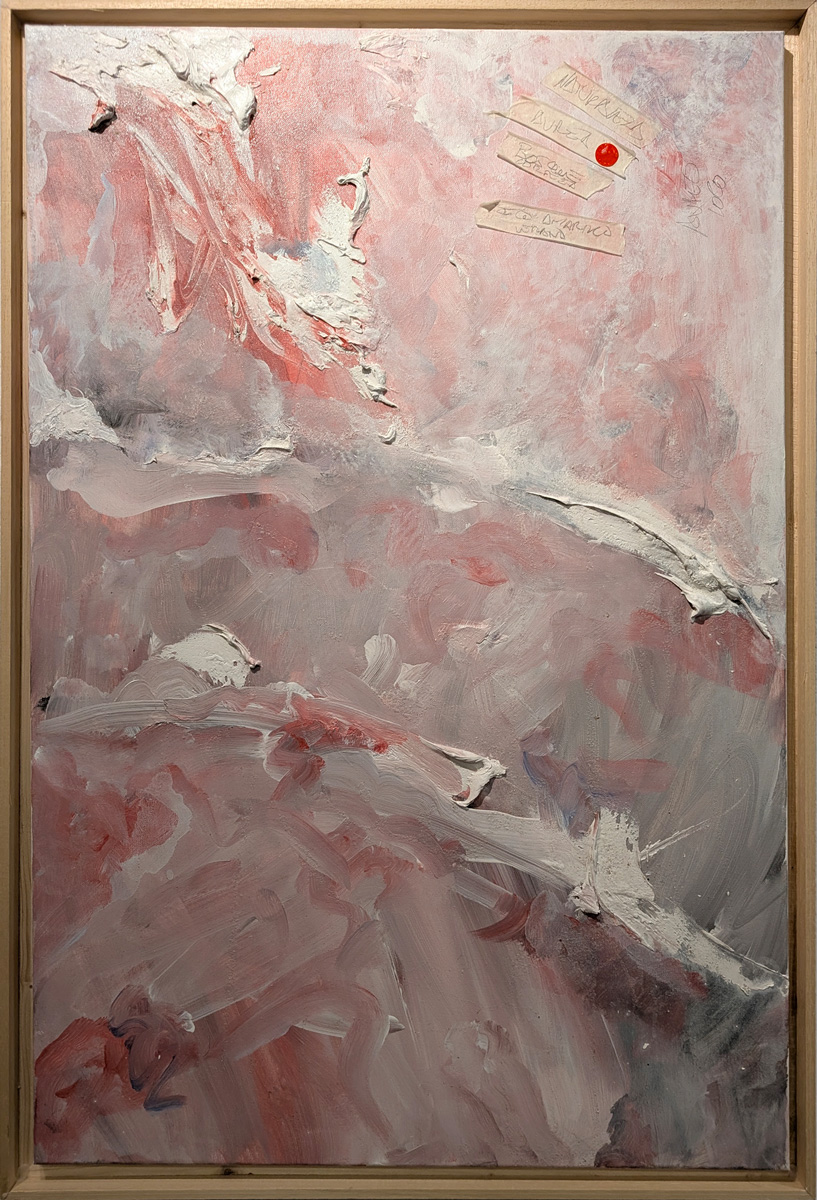 Technique & Materiality: Fluid Path explores the serene movement of water across a riverbed or a tidal flat. Using a masterfully controlled mix of textured plaster and acrylic on fabric, the artist creates a sense of horizontal flow that guides the eye. The matte finishes emphasize the grounded nature of sediment, while selective gloss varnish creates a “liquid” shimmer that suggests movement. The large surface area allows for a complex layering process, where the plaster is carved to reveal hidden colors beneath, echoing the natural erosion of a “Pop” riverbank in a sophisticated mixed-media dialogue.